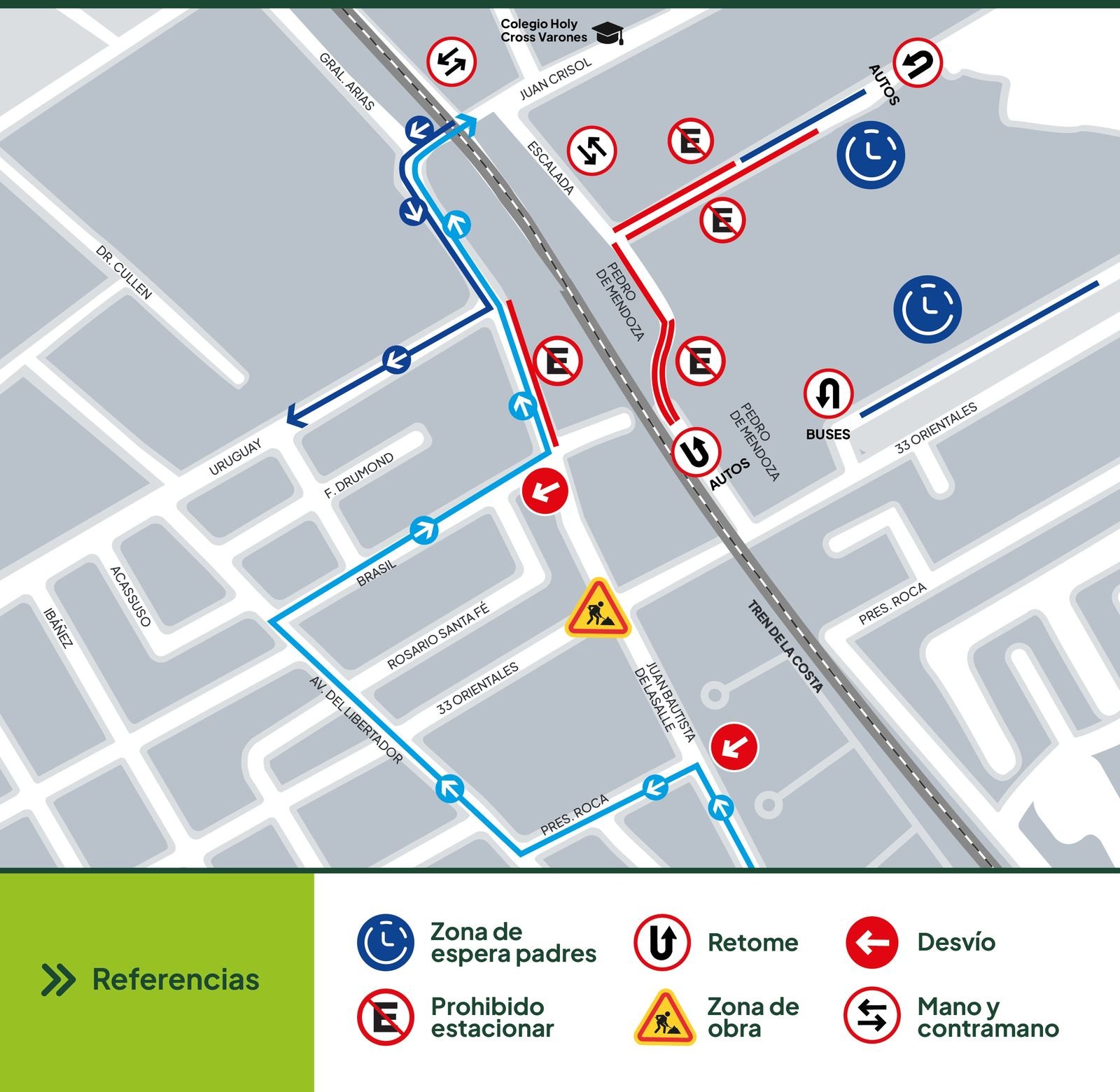 - Crisol también tendrá doble mano temporal, facilitando el acceso al Colegio Holy Cross. El acceso a la institución podrá realizarse por Brasil o Uruguay, continuando por Arias, Crisol, Escalada y Pedro de Mendoza.