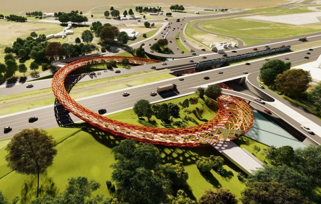 La estructura no sólo cruzará la barrera urbana, funcionará como mirador panorámico: desde el punto elevado se podrá observar cómo despegan y aterrizan los aviones.